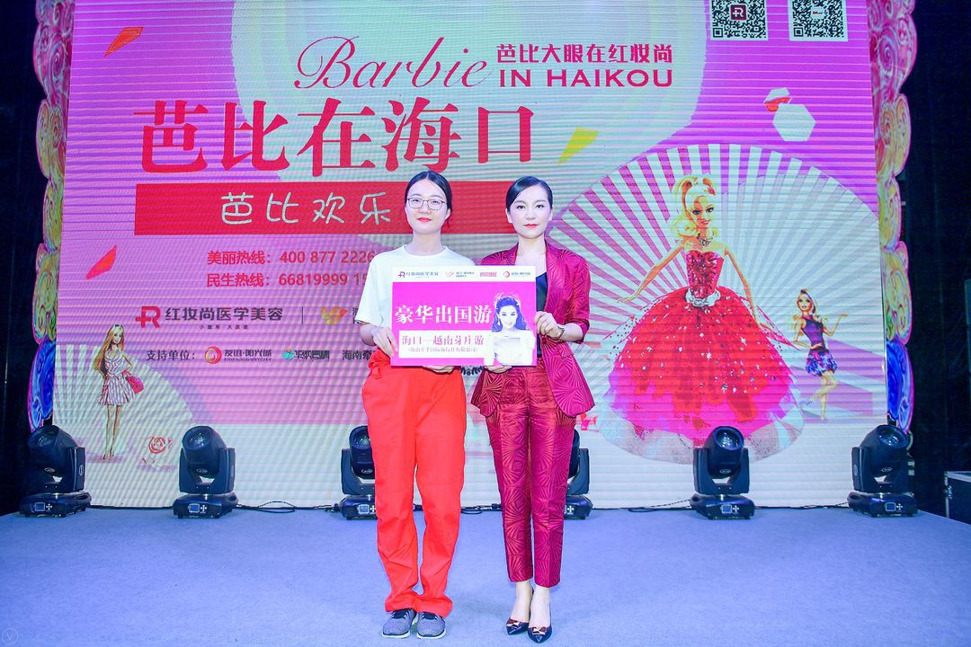 放大一双眼美丽一张脸,芭比在海口,芭比大眼在红妆尚;芭比形象代表着美丽自信的象征,